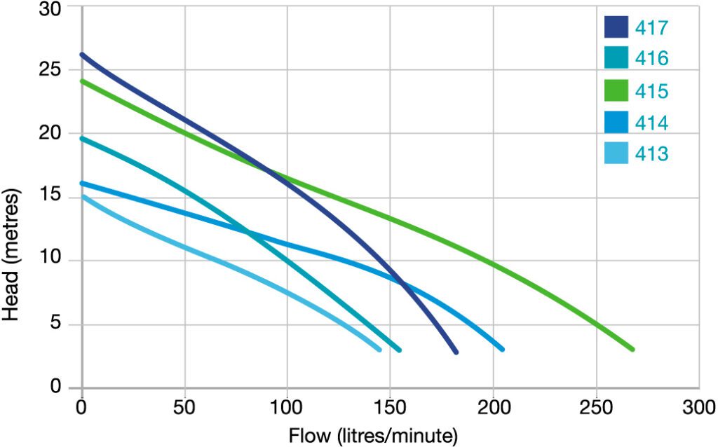 The Onga Hi-Flo range is made from high performance materials and is suited to a wide array of flow and pressure applications. The 400 series provides water flows up to 270 litres per minute and maximum pressures up to 26 metres. Constructed of high grade corrosion resistant materials making them suitable for the harshest of conditions.