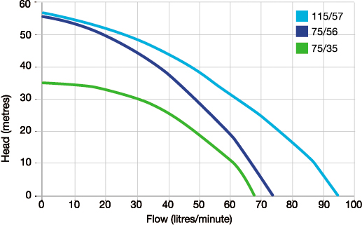 - Max. head – 57 m